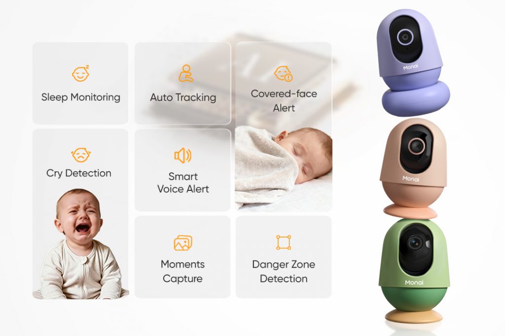 Monai Baby Monitor is a must-have for new-generation parents. It comes in three configurations (Standard, Pro, and Nest) with video resolution ranging from 3K to 4K, plus 350-degree horizontal and 65-degree vertical pan-and-tilt capability. With on-device AI detection and storage, Monai Baby Monitor ensures a high standard of data security and privacy, protected by encrypted video technology and strict access controls. It has also received six international certifications.